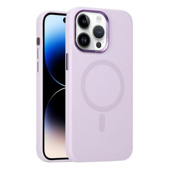 For iPhone 14 Pro Max Metal Lens Frame Liquid Silicone MagSafe Phone Case(Light Purple)