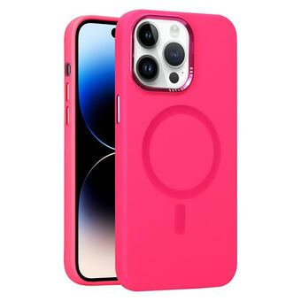 For iPhone 14 Pro Max Metal Lens Frame Liquid Silicone MagSafe Phone Case(Rose Red)