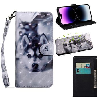 Θήκη τηλεφώνου δερμάτινη με σχέδιο 3D ζωγραφικής και χρώματα για iPhone 14 Pro Max (Husky)