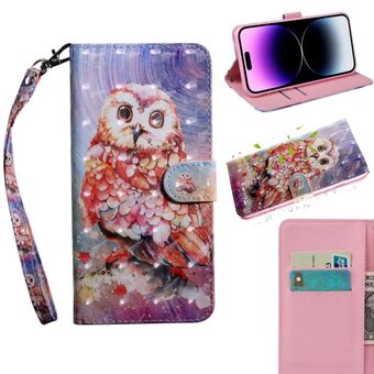 Θήκη τηλεφώνου από δέρμα με σχέδιο 3D ζωγραφικής για iPhone 14 Pro Max (Πολύχρωμη κουκουβάγια)