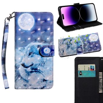 Θήκη τηλεφώνου δερμάτινη με σχέδιο 3D ζωγραφικής και πολύχρωμη απεικόνιση για iPhone 14 Pro Max (Λύκος)