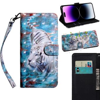 Θήκη τηλεφώνου δερμάτινη με σχέδιο 3D ζωγραφικής και πολύχρωμη απεικόνιση για iPhone 14 Pro Max (Τίγρης)