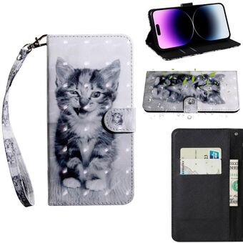 Θήκη τηλεφώνου δερμάτινη με σχέδιο 3D ζωγραφικής και πολύχρωμη απεικόνιση (γάτα) για iPhone 14 Pro Max.