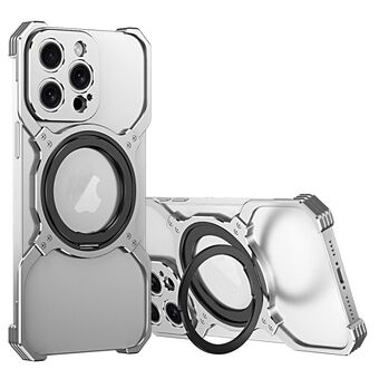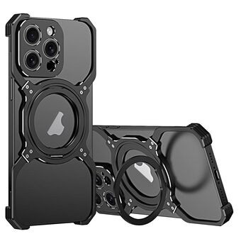 Θήκη τηλεφώνου από μέταλλο για iPhone 14 Pro Max με μηχανικό βραχίονα, χωρίς πλαίσιο και με MagSafe (Μαύρο/Ασημί)