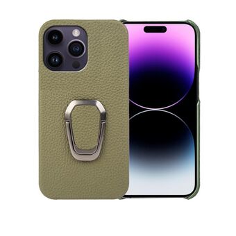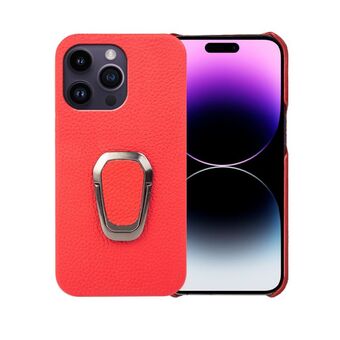 Θήκη τηλεφώνου από γνήσιο δέρμα με υφή λitchi για iPhone 14 Pro Max με δακτύλιο στήριξης (Λευκό)
