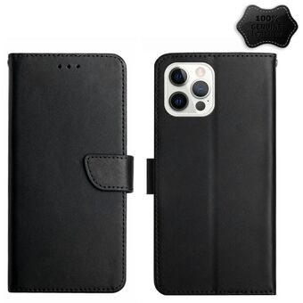Θήκη τηλεφώνου οριζόντια, ανακλινόμενη, από γνήσιο δέρμα, ανθεκτική στα δακτυλικά αποτυπώματα για iPhone 14 Pro Max (Μαύρο)