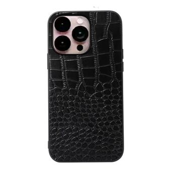 For iPhone 14 Pro Max Crocodile Top Layer Cowhide Leather Case (Black)