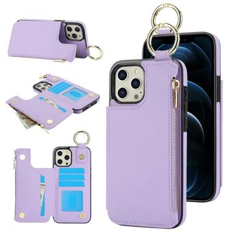For iPhone 14 Pro Max RFlD Anti-theft Double Buckle Ring Zipper Card Phone Case(Purple)