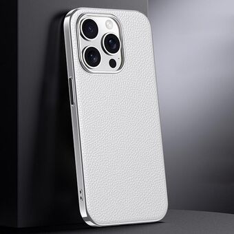 For iPhone 14 Pro Max First Layer Cowhide Leather Electroplated PC Phone Case(White)