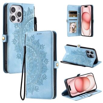 For iPhone 14 Pro Max Skin Feel Totem Embossed Leather Phone Case(Blue)