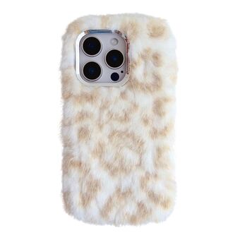 For iPhone 14 Pro Max Leopard Print Plush TPU Phone Case(Light Yellow)
