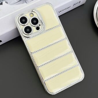 For iPhone 14 Pro Max Electroplated Silver Edge Eiderdown TPU Phone Case(Yellow)