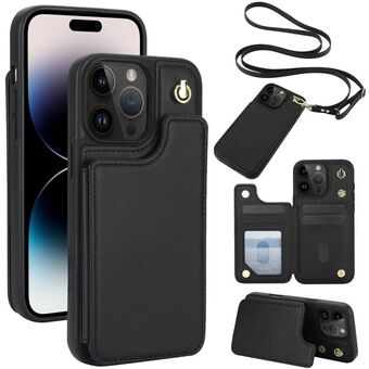 For iPhone 14 Pro Max Crossbody Dual-Buckle Wallet Back Leather Phone Case(Black)
