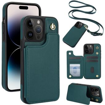 For iPhone 14 Pro Max Crossbody Dual-Buckle Wallet Back Leather Phone Case(Green)
