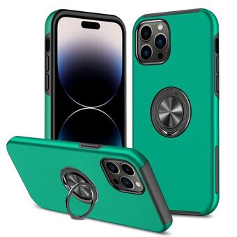 For iPhone 14 Pro Max Magnetic Ring Kickstand Shockproof Phone Case (Dark Green)