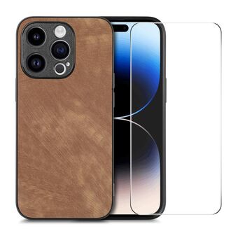 For iPhone 14 Pro Max ENKAY Retro Leather Skin PC Phone Case with High Aluminum-silicon Glass Film(Brown) (ENKAY)