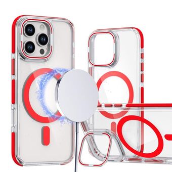 For iPhone 14 Pro Dual-Color Clear Acrylic Hybrid TPU Lens Flip Holder MagSafe Phone Case(Red)