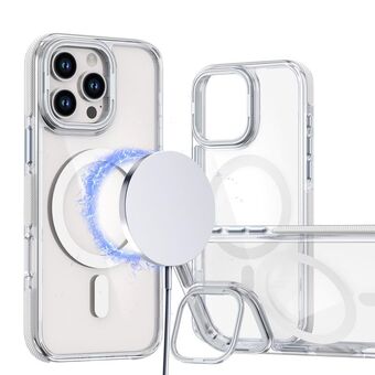 For iPhone 14 Pro Dual-Color Clear Acrylic Hybrid TPU Lens Flip Holder MagSafe Phone Case(White)
