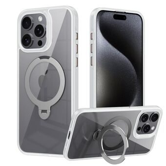 For iPhone 14 Pro Transparent MagSafe Magnetic Rotating Ring Holder Phone Case(White)
