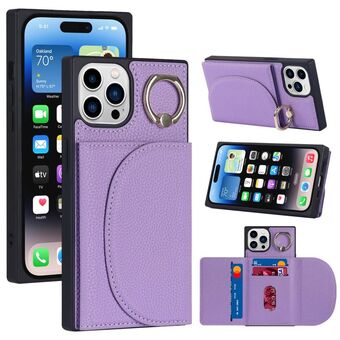 For iPhone 14 Pro Cross-body Square Dual-Buckle Card Flip Wallet Phone Case(Purple)