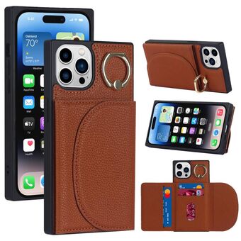 For iPhone 14 Pro Cross-body Square Dual-Buckle Card Flip Wallet Phone Case(Brown)