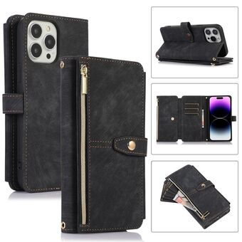 Θήκη τηλεφώνου JEEHOOD C22 Series με φερμουάρ και λουρί (μακρύ και κοντό) για iPhone 14 Pro (Καφέ) (JEEHOOD)