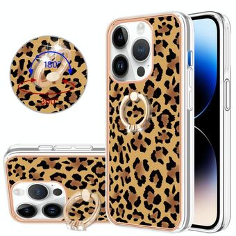 For iPhone 14 Pro Electroplating Dual-side IMD Phone Case with Ring Holder(Leopard Print)