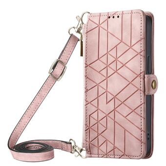 For iPhone 14 Pro Geometric Zipper Wallet Side Buckle Leather Phone Case with Crossbody Lanyard(Pink)