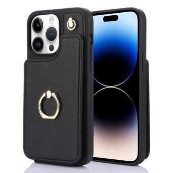 For iPhone 14 Pro YM005 Skin Feel Card Bag Phone Case with Long Lanyard(Black)