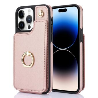 For iPhone 14 Pro YM007 Ring Holder Card Bag Skin Feel Phone Case(Rose Gold)