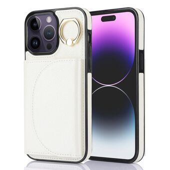 For iPhone 14 Pro YM007 Ring Holder Card Bag Skin Feel Phone Case(White)