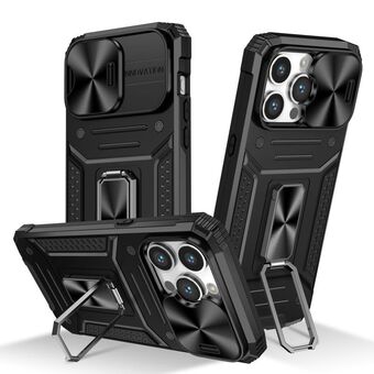 For iPhone 14 Pro Camshield Robot TPU Hybrid PC Phone Case(Black)