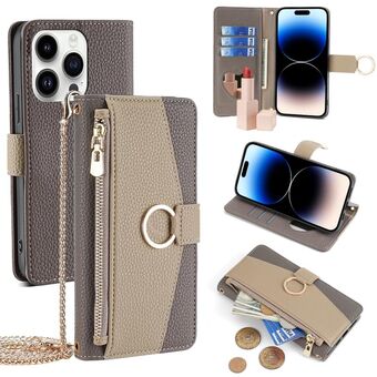 For iPhone 14 Pro Crossbody Litchi Texture Leather Phone Case(Grey)