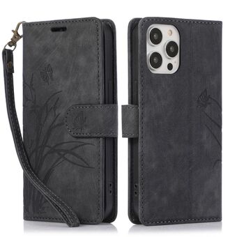 For iPhone 14 Pro Orchid Butterfly Embossed Leather Phone Case(Black)