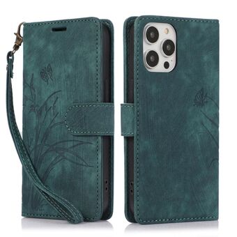 For iPhone 14 Pro Orchid Butterfly Embossed Leather Phone Case(Green)