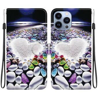 For iPhone 14 Pro Crystal Texture Colored Drawing Leather Phone Case(Heart Shaped)