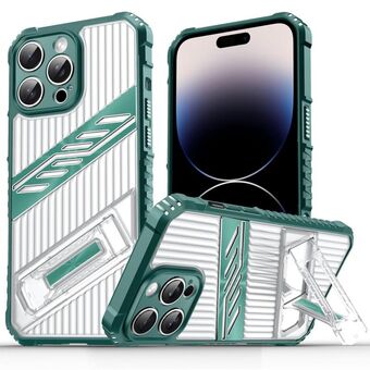 For iPhone 14 Pro Plating Holder PC Hybrid TPU Phone Case(Dark Green)