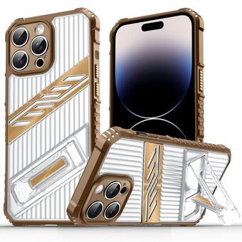 For iPhone 14 Pro Plating Holder PC Hybrid TPU Phone Case(Desert Gold)