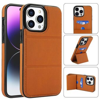 For iPhone 14 Pro Tri-fold Holder Leather Phone Case with Card Slot(Brown)
