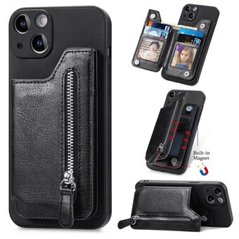 Θήκη για iPhone 14 Pro με φερμουάρ, δερμάτινη, αντικραδασμική (Μαύρο)