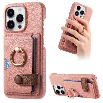 Θήκη τηλεφώνου για iPhone 14 Pro από δέρμα Litchi με λεπτή άκρη και θήκη καρτών στην πλάτη (βερίκοκο).