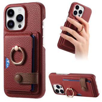 Θήκη κινητού τηλεφώνου για iPhone 14 Pro από δέρμα Litchi με λεπτή άκρη και θήκη για κάρτες στην πλάτη (Καφέ)