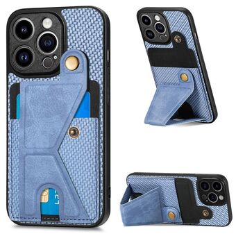 For iPhone 14 Pro Carbon Fiber Wallet Flip Card K-shaped Holder Phone Case(Blue)