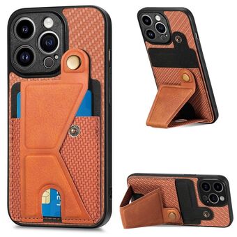 For iPhone 14 Pro Carbon Fiber Wallet Flip Card K-shaped Holder Phone Case(Brown)