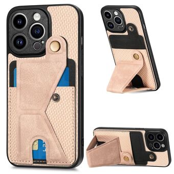 For iPhone 14 Pro Carbon Fiber Wallet Flip Card K-shaped Holder Phone Case(Khaki)