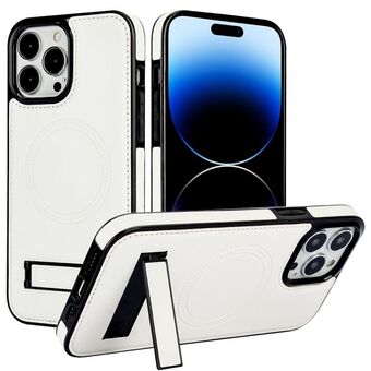 Θήκη τηλεφώνου για iPhone 14 Pro από δέρμα σε ρετρό στυλ με αόρατο στήριγμα και MagSafe (Λευκό)