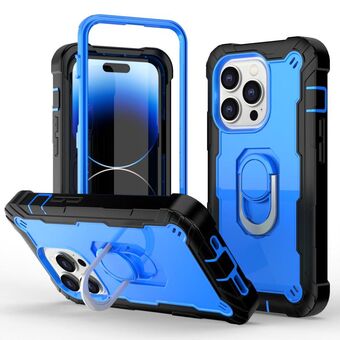 For iPhone 14 Pro Two-color Ring Holder Phone Case(Black + Blue)
