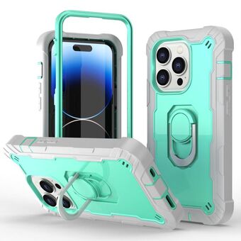 For iPhone 14 Pro Two-color Ring Holder Phone Case(Grey White + Mint Green)