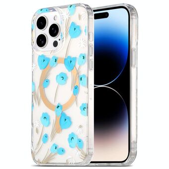 Θήκη τηλεφώνου MagSafe διπλής όψης, διαφανής για iPhone 14 Pro (Γαλάζιο Λουλούδι)
