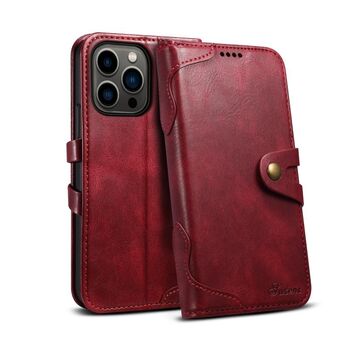 Θήκη τηλεφώνου από δέρμα για iPhone 14 Pro με πλευρική αγκράφα, διπλό λουρί χειρός (Κόκκινο)